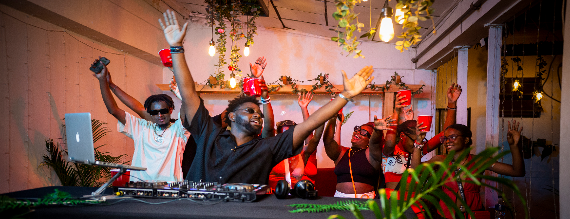 Good vibe good energy good songs drink and food....